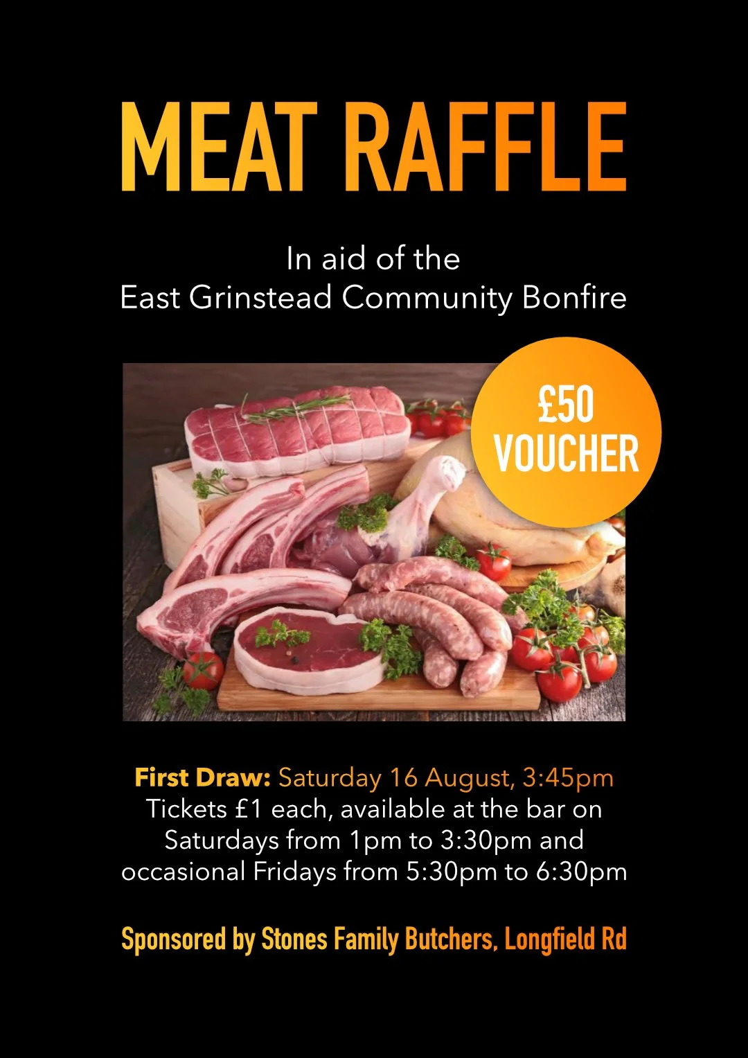 Aug 16 3:45 PM15:45 Meat Raffle Saturday, August 16, 2025 3:45 PM 6:45 PM 15:45 18:45 The Crown (map) Google Calendar ICS View Event →