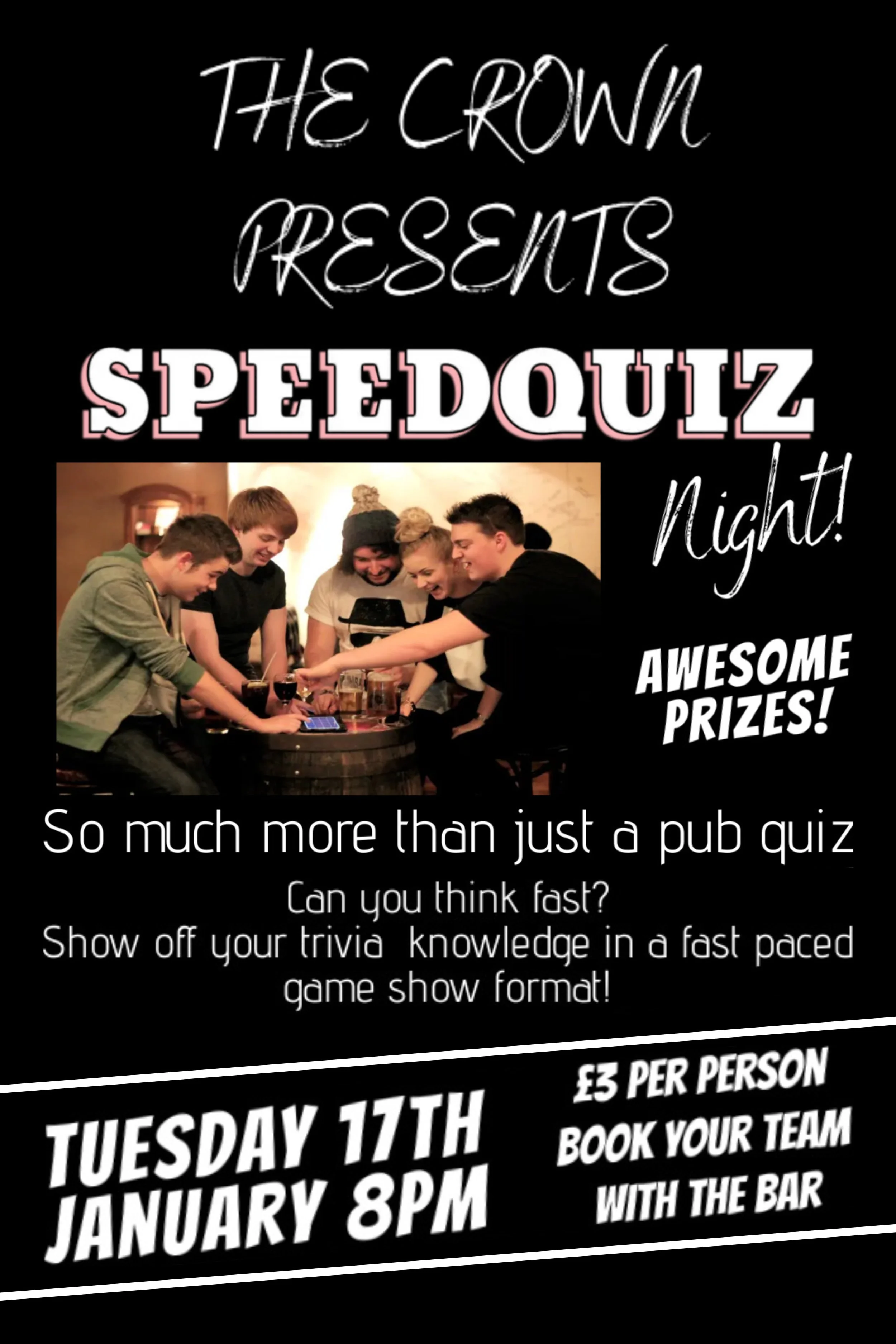 Speed Quiz Night Tuesday, January 17, 2023 8:00 PM 11:00 PM 20:00 23:00 The Crown 35 High Street East Grinstead, England, RH19 3AF United Kingdom (map) Google Calendar ICS
