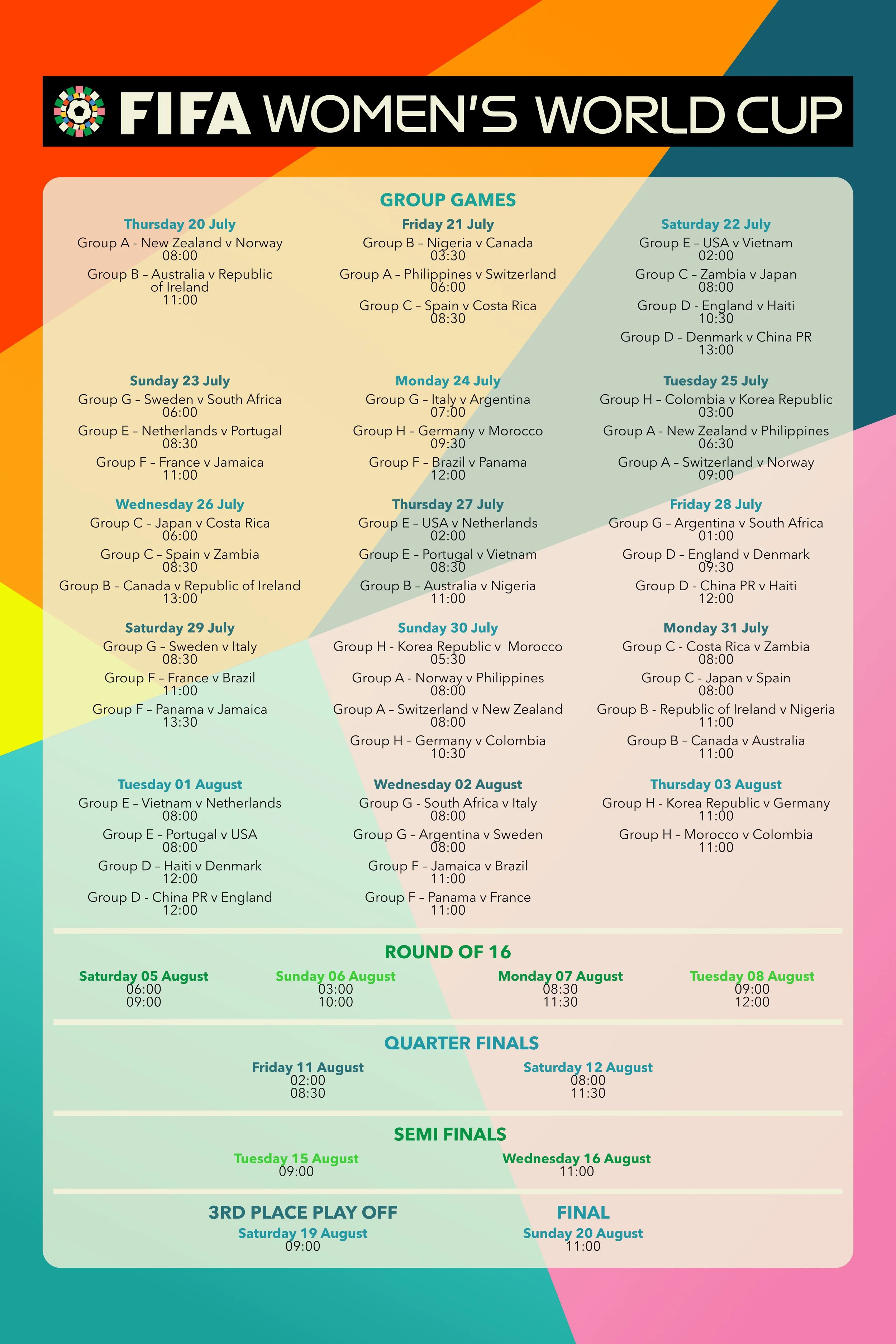 Jul 20 to Aug 20 FIFA Women's World Cup Fixtures Thu, Jul 20, 2023 1:30 PM 13:30 Sun, Aug 20, 2023 11:30 PM 23:30 The Crown (map) Google Calendar ICS View Event →